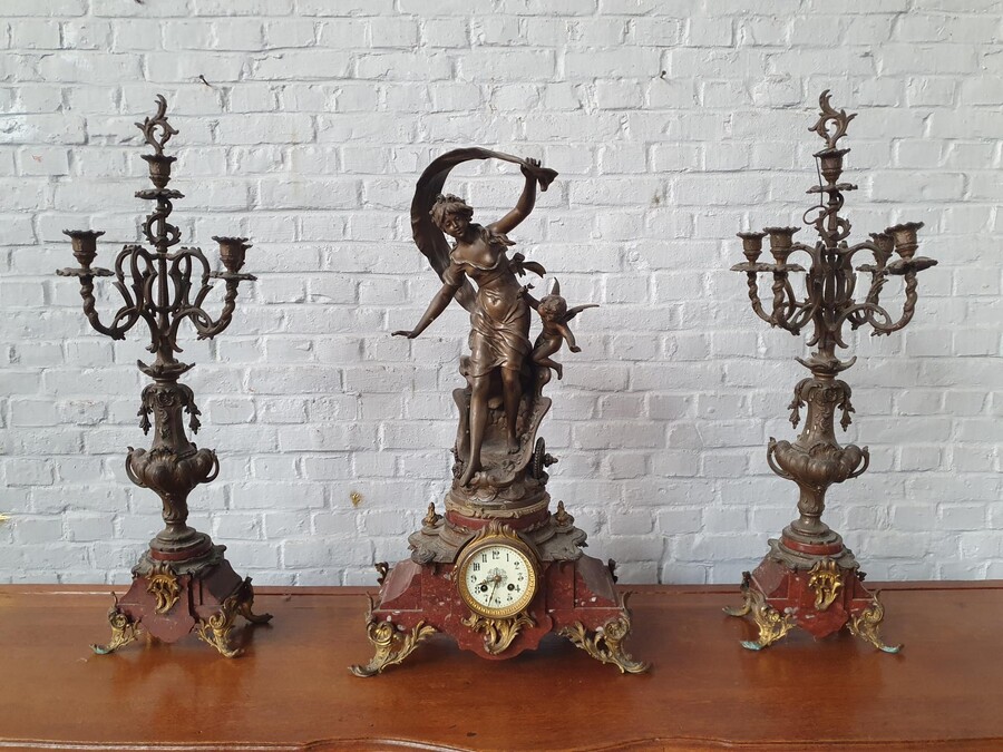 Clock set (large) Louis XV France Spelter (Zamac) 1890