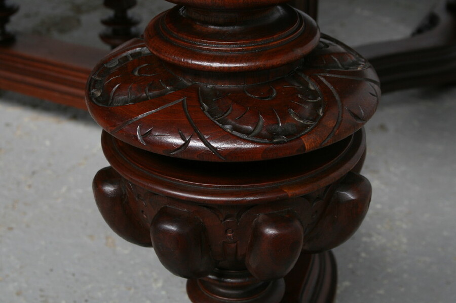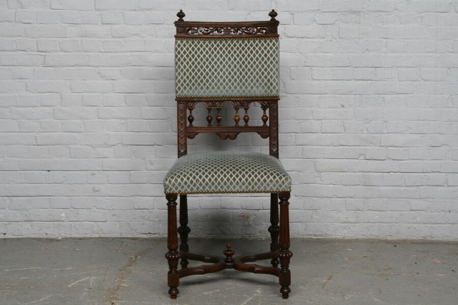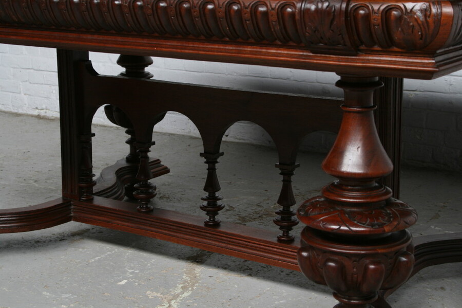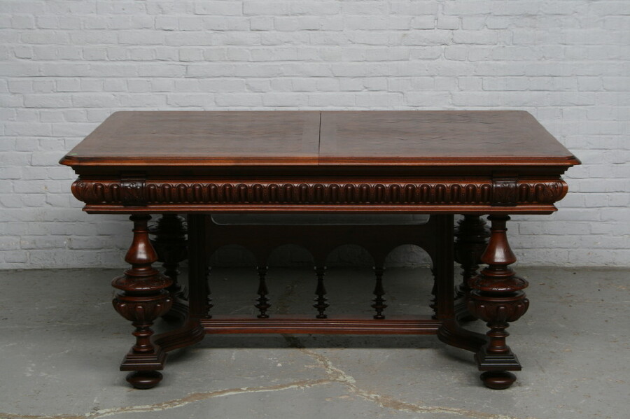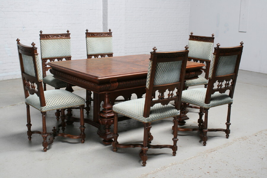 Table + 6 chairs Henry II (Renaissance) France Walnut 1890