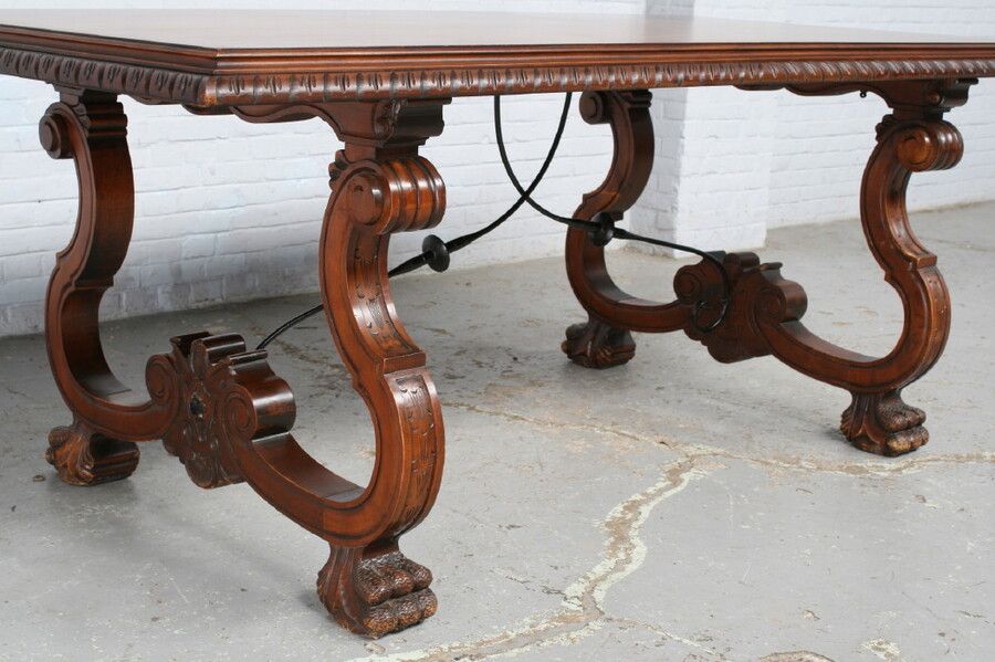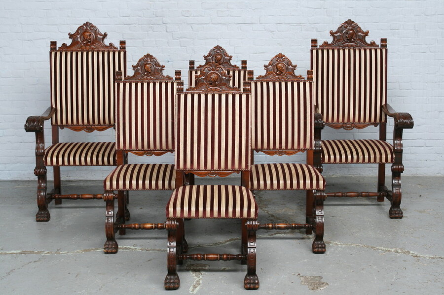 Table + 6 chairs Spanish Renaissance Spain Walnut 1950