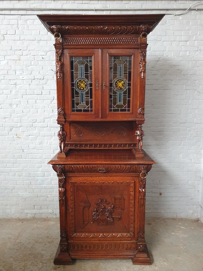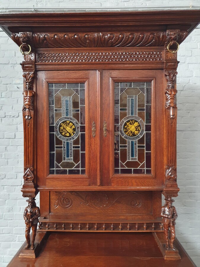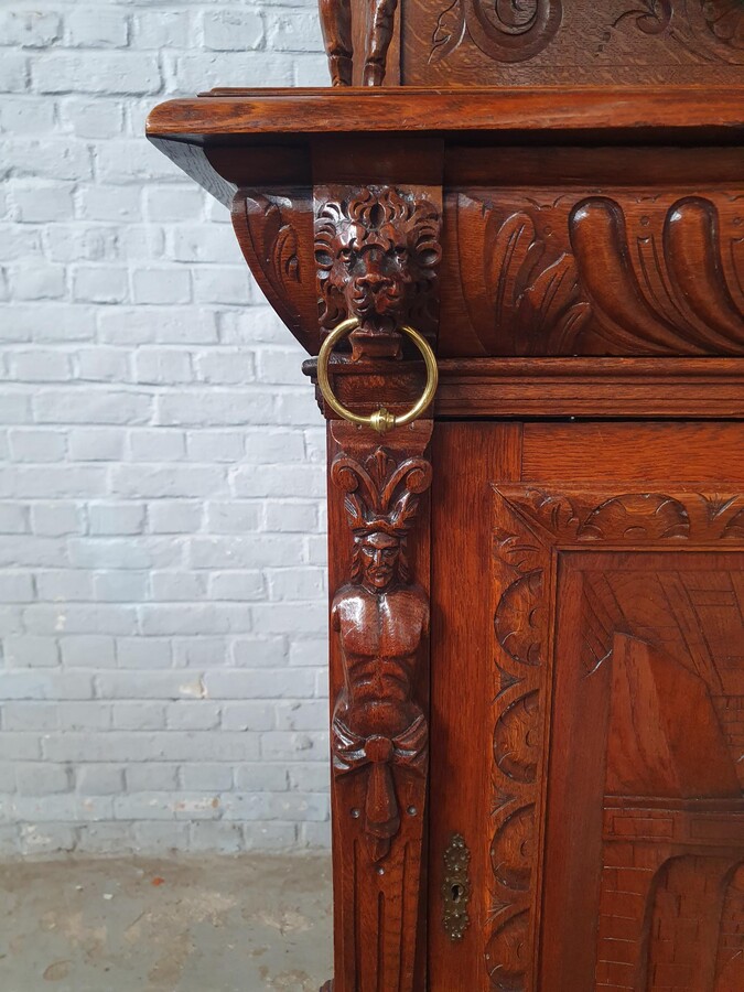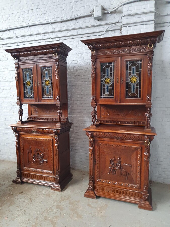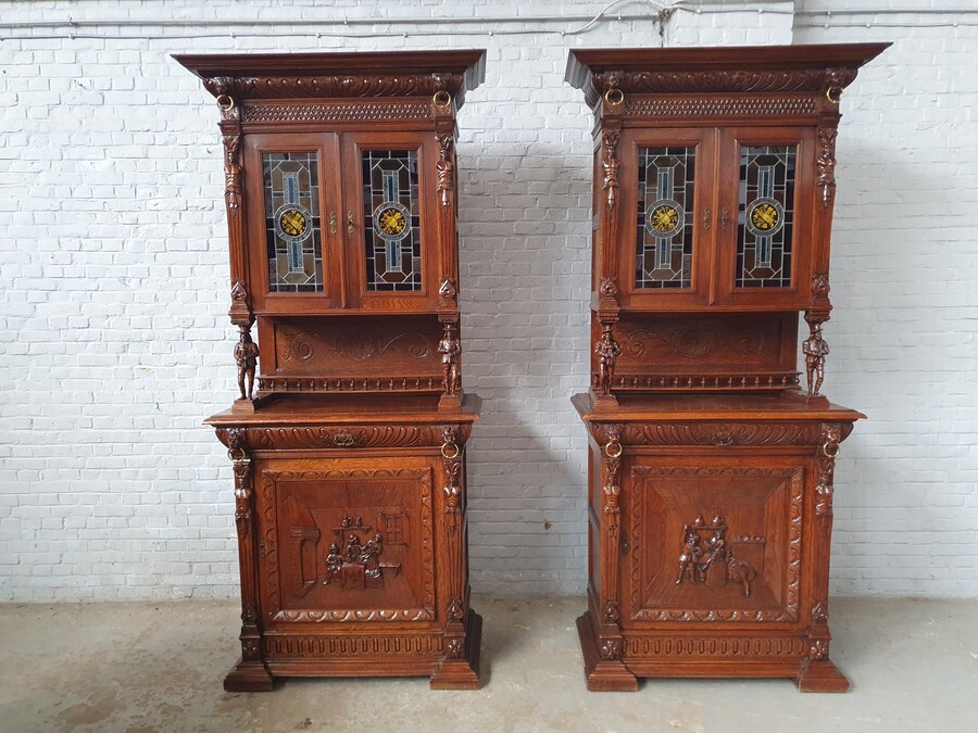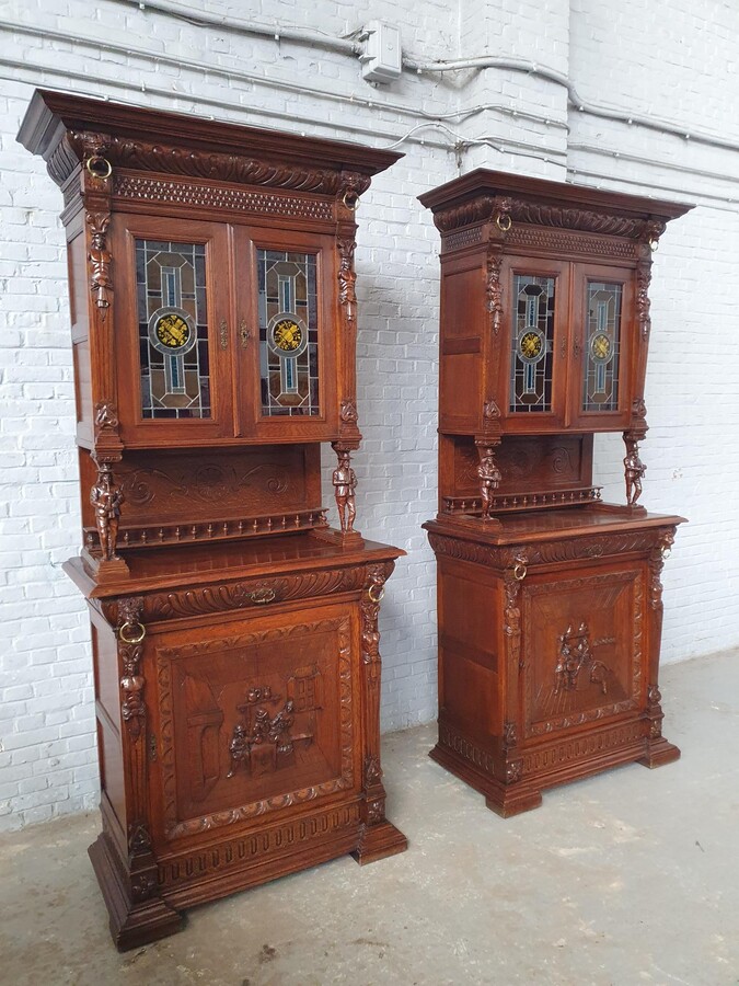 Cabinets (pair) Renaissance (Mechelen) Belgium Oak 1900