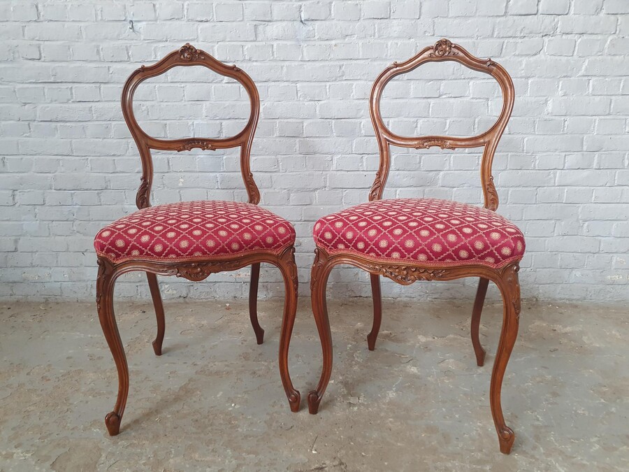 Chairs (Pair) Louis XV France Walnut (Solid) 1890