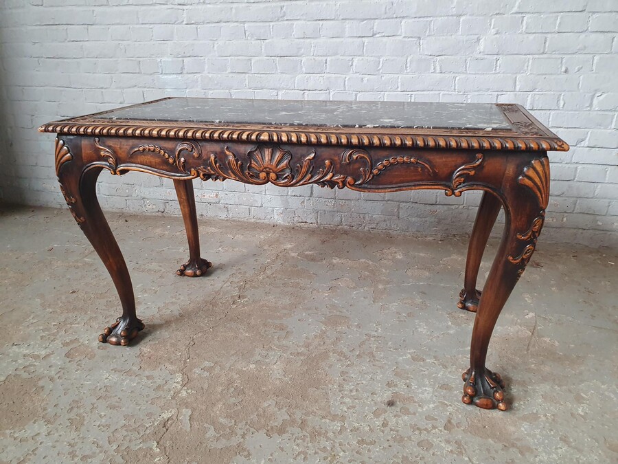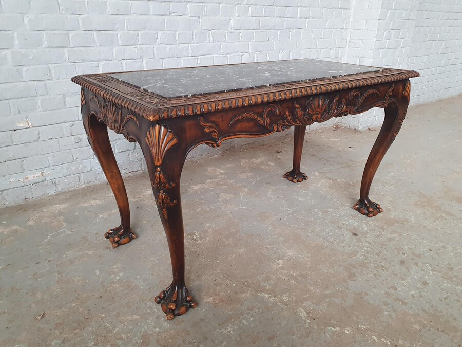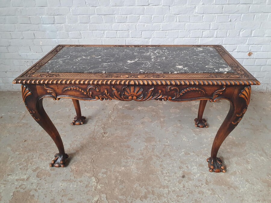 Coffee Table (Marble top) Chippendale Belgium Walnut 1920